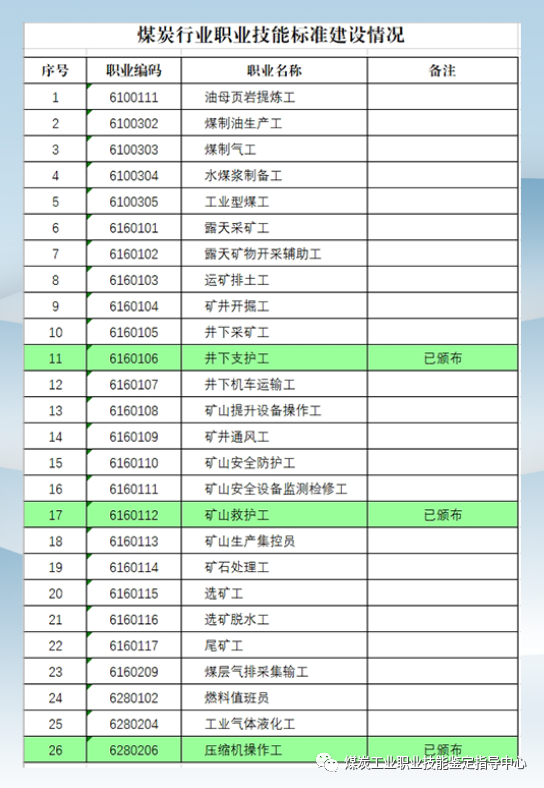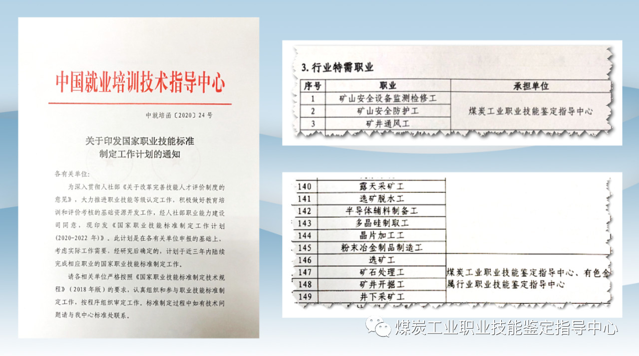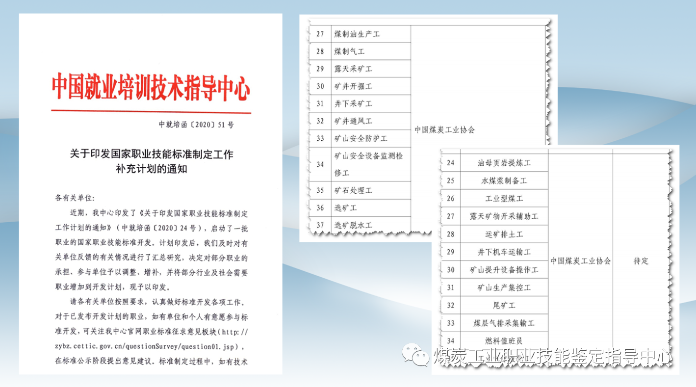 11月5日,中国就业培训技术指导中心印发《关于印发国家职业技能标准制定工作补充计划的通知》(中就培函〔2020〕51号),决定根据中国煤炭工业协会提请的报告,依据煤炭行业职业技能工作需求,为行业职业技能等级认定增加国家职业标准开发计划。