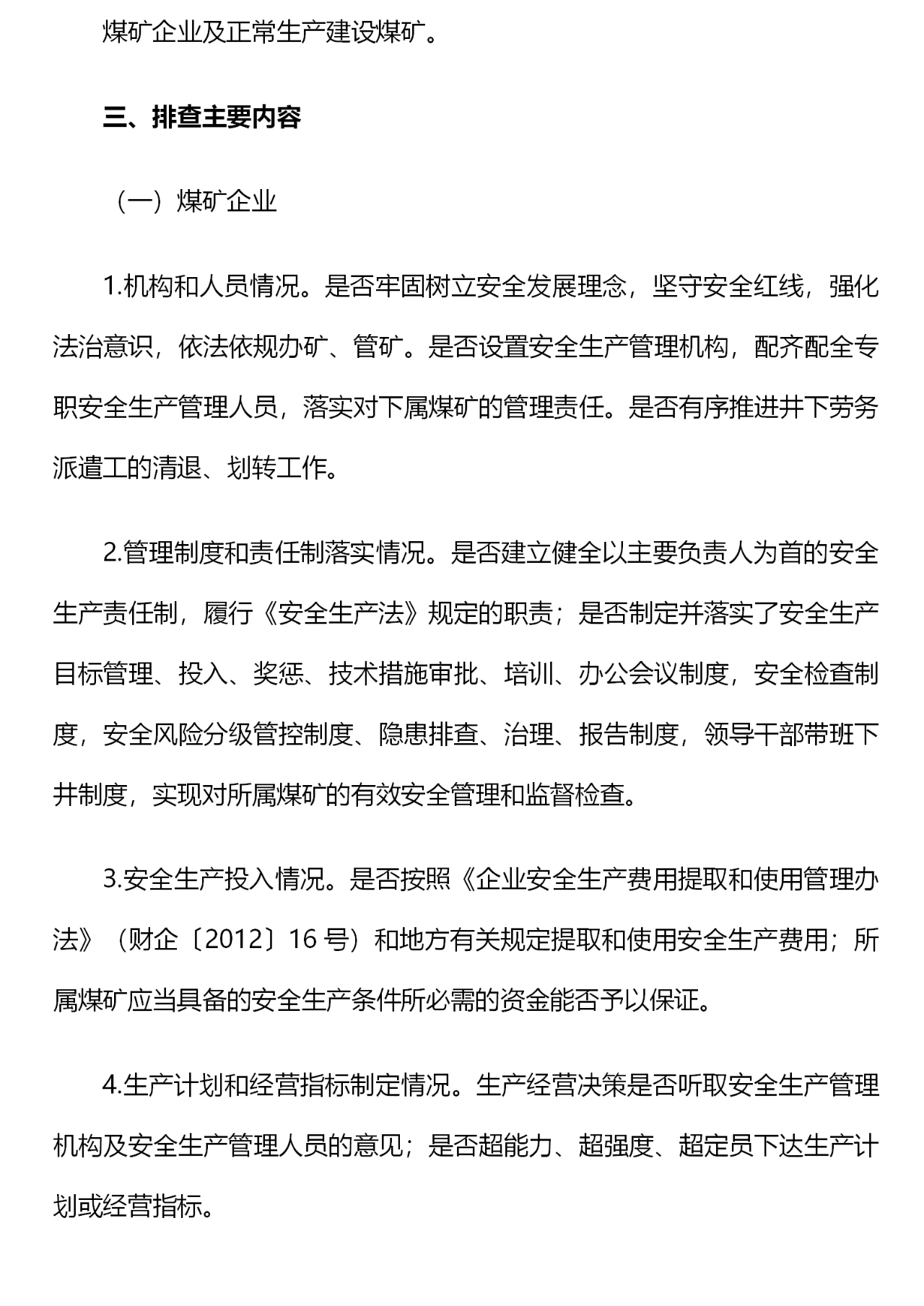 第二阶段:2021年春节后,对所有煤矿企业和正常生产建设煤矿全面展开。对停产停工煤矿,各地监管部门要落实巡查、盯守责任,停产停工煤矿复工复产前要及时组织开展排查。