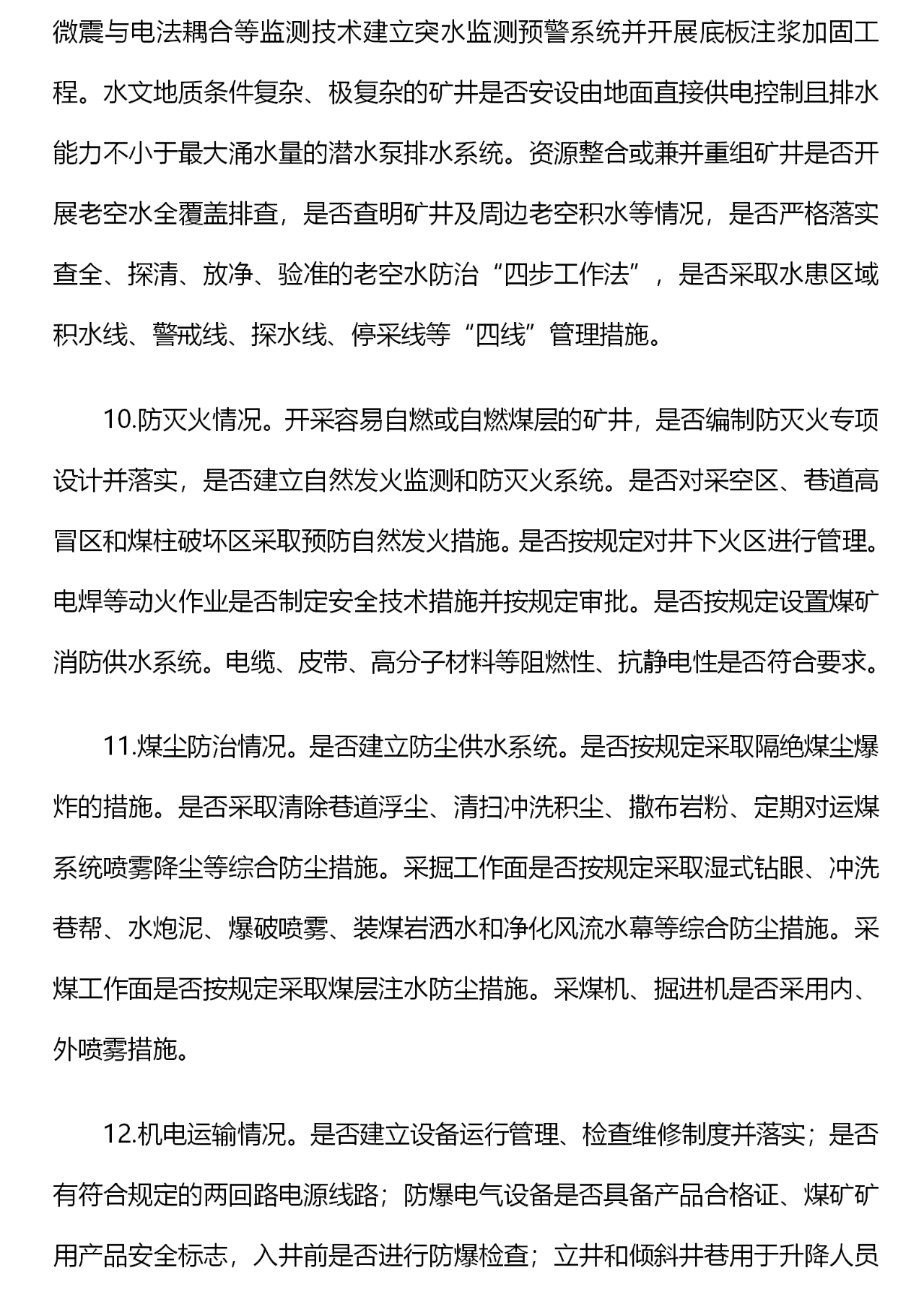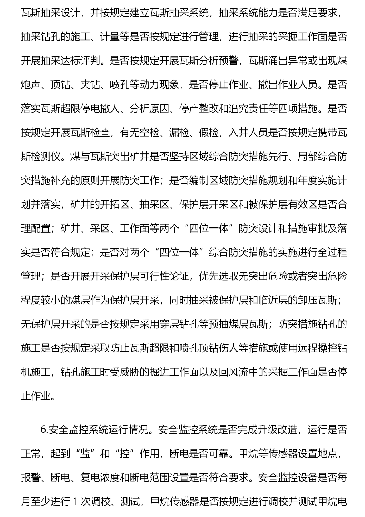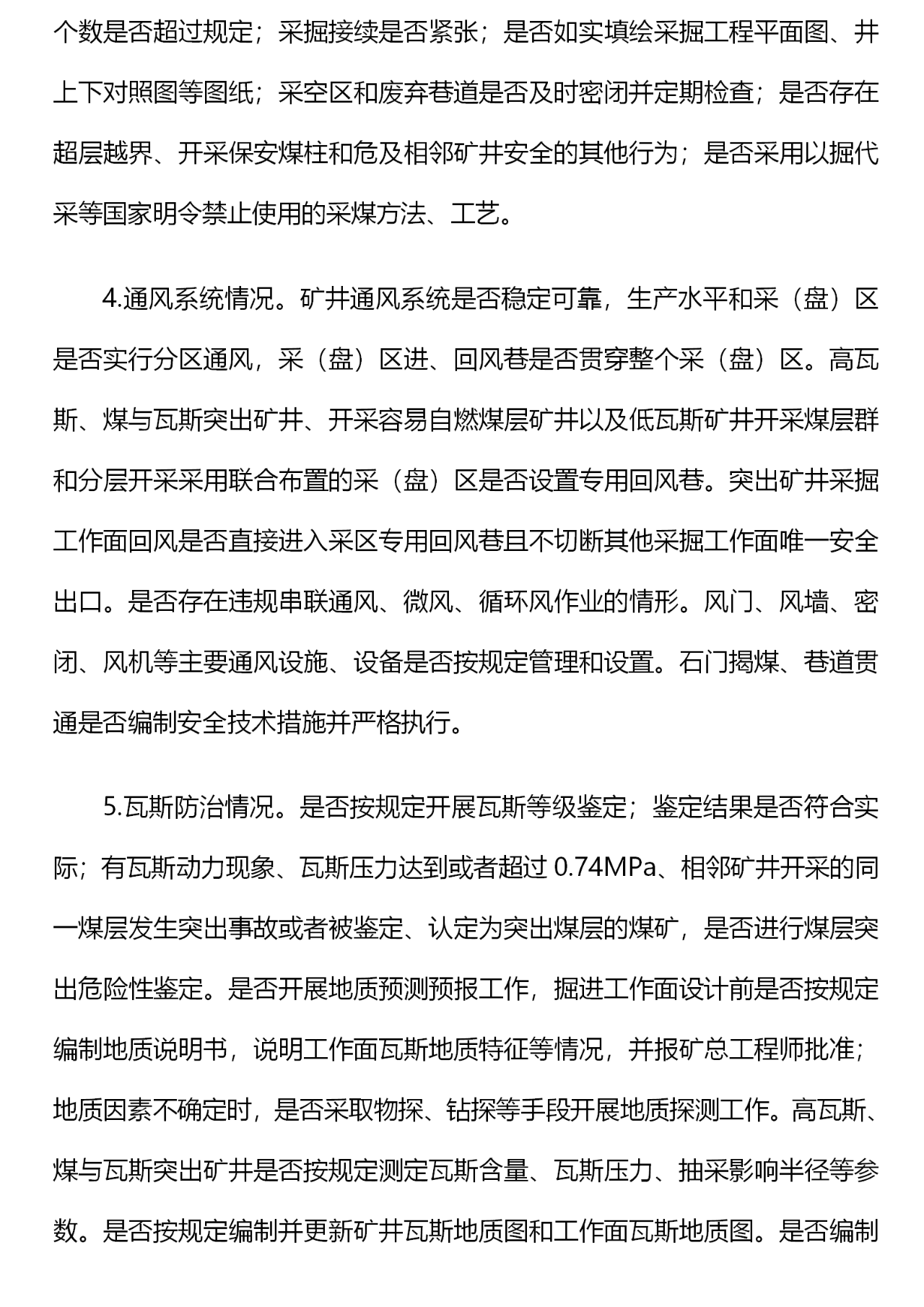 (包含煤矿各类情形,以下重点列举瓦斯防治情况)