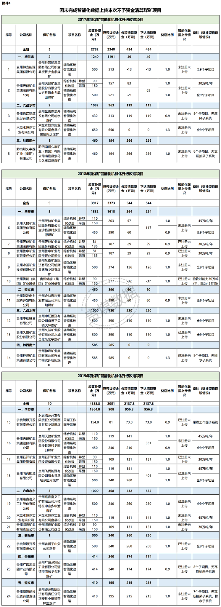 部分煤矿已提交验收闭合材料但因未完成智能化数据上传或上传数据不正常,本次不予资金清算,到今年底仍未完成智能化数据上传或上传数据不正常的将收回奖补资金。