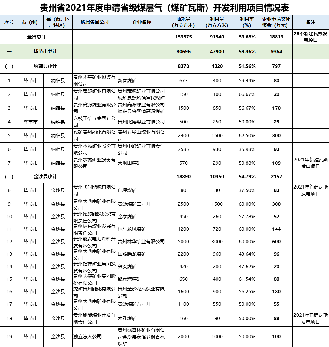 为贯彻落实《省人民政府关于煤炭工业淘汰落后产能加快转型升级的实施意见》(黔府发〔2017〕9号)、《省能源局 省财政厅印发关于支持加大煤矿安全生产投入的若干政策措施的通知》(黔能源煤安〔2020〕62号)、《关于进一步加强煤层气(煤矿瓦斯)开发利用财政补贴资金支持项目管理工作的通知》(黔能源科技〔2019〕159号)等文件精神,根据有关主体企业申请,经市、县煤炭行业管理部门审核,现对按照《关于组织申报煤矿智能化建设及煤层气(煤矿瓦斯)开发利用等项目奖补资金的通知》要求申请的贵州省2021年度省级煤层气(煤矿瓦斯)开发利用项目进行公示并接受社会监督。