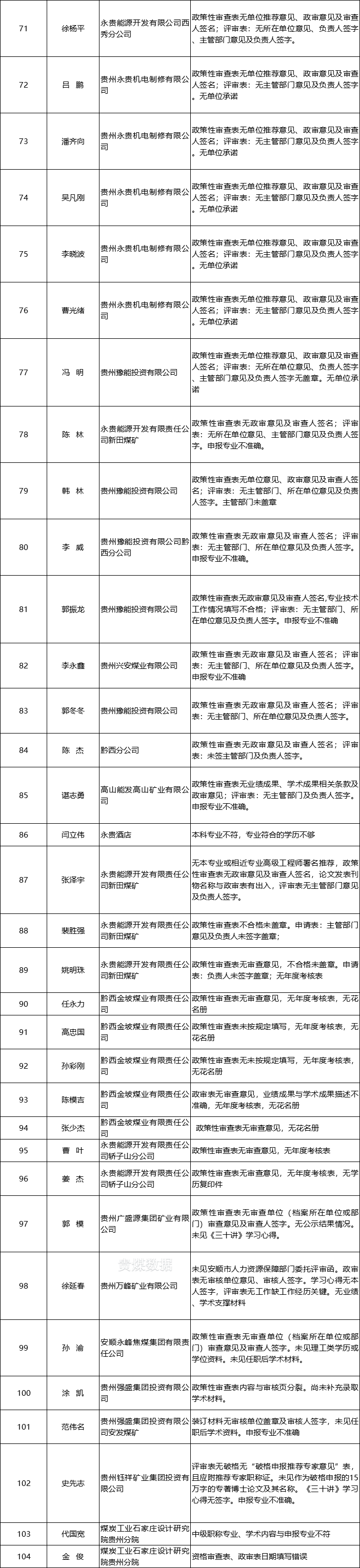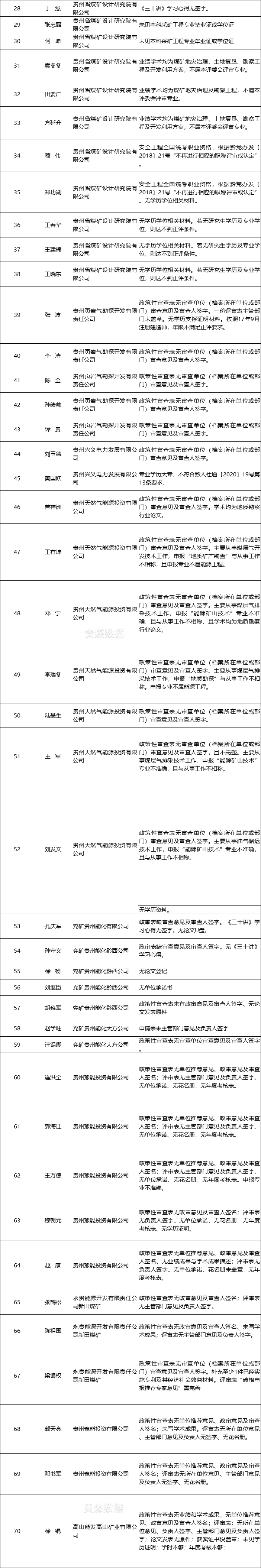 政策性审查未通过人员需补充材料的,请于2020年12月1日(星期二)—12月7日(星期一)上午8:30-12:00、下午14:00-17:30补充申报材料。补充材料请严格按照申报材料要求,用A4纸大小的牛皮纸质信封或档案袋封装,逾期不再受理。补充材料报送地址:贵州省煤炭工业协会(贵阳市瑞金北路口京瑞宾馆附楼216室)