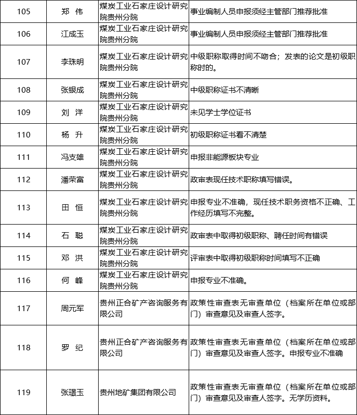 经审查有119人提交材料不合格,未通过政策性审查,现将未通过人员名单予以公示。
